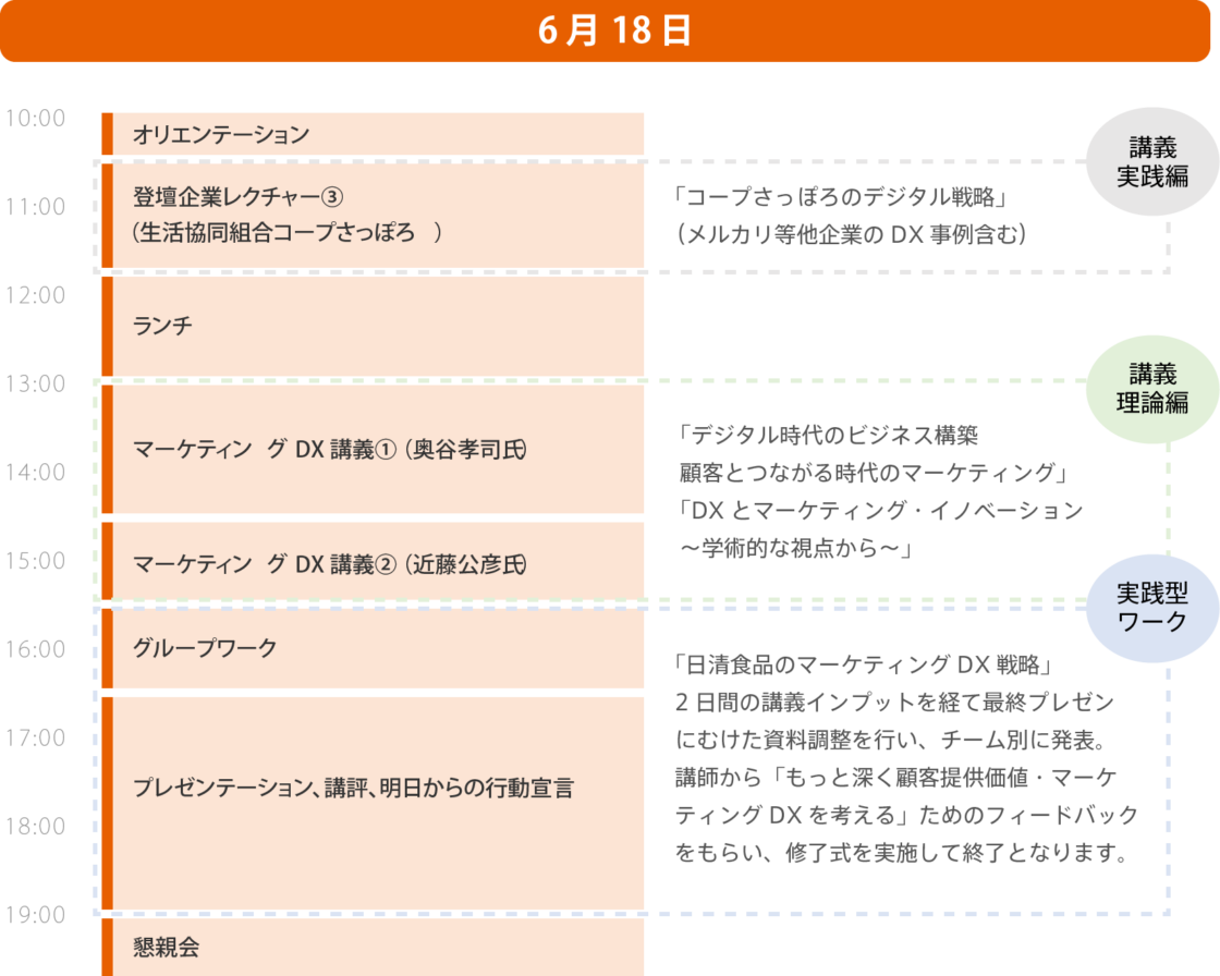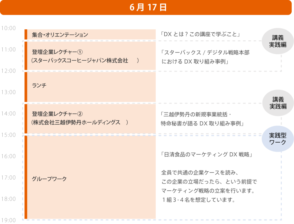 スケジュールは、①講義(実践編)②講義(理論編)③実践型ワークの三部構成。