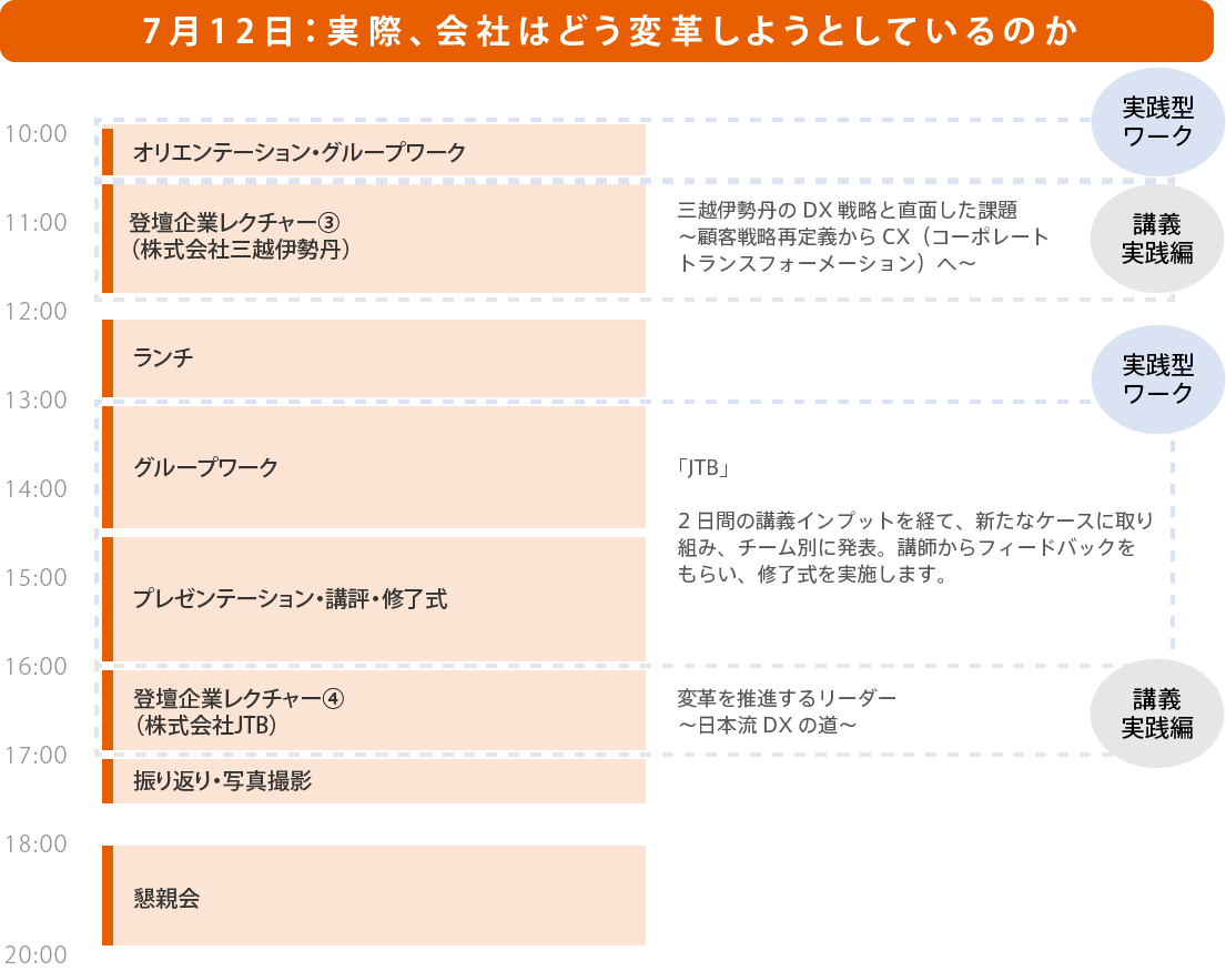 スケジュールは、①講義(実践編)②講義(理論編)③実践型ワークの三部構成。